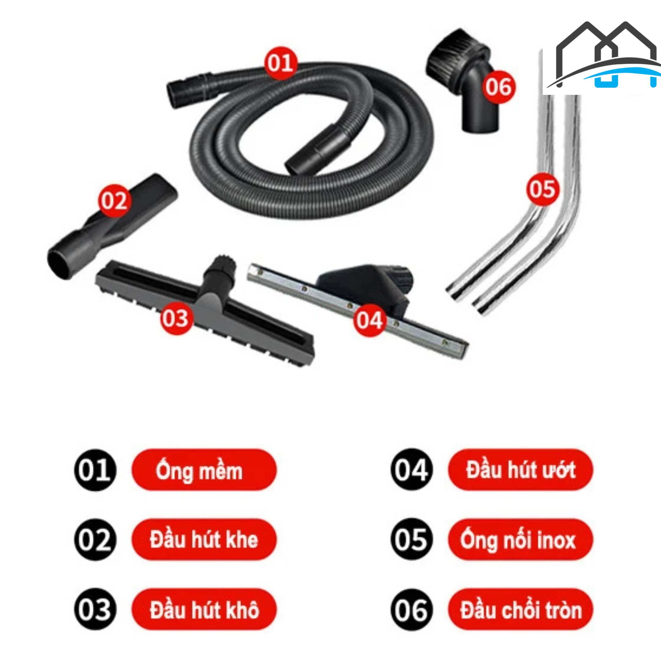 - Phụ kiện đầy đủ – xử lý được mọi loại bụi, nước, rác